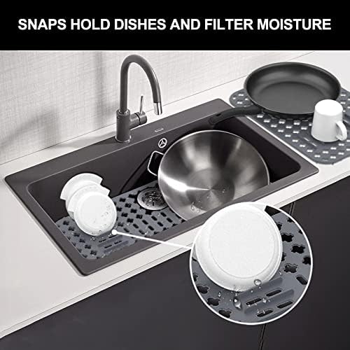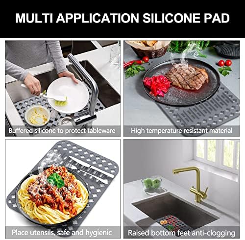 PROTECT YOUR SINK: The raised feet shape of the bottom make these silicone sink mats raised and non-slip. Keeps dishes off the porcelain bottom while allowing fluids to drain toward the sink drain. Raised broad ridges for ventilation that ensure dishes dry faster and use partition design, kitchen utensils placed more stable. Helps organize dishes and maximize sink space.