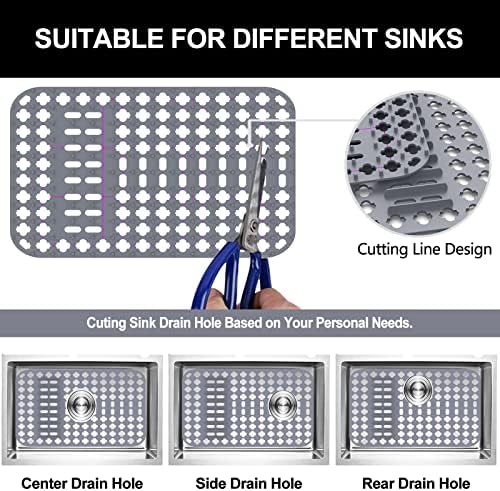 CUT TO FIT: Our sink protectors for kitchen sink come in 15.7″ x 11.4″ square guards, and the upgrade backside pattern cutting design make it easy to cutting sink drain holes according to your individual needs. Warm Remind: Please measure the size of your sink!