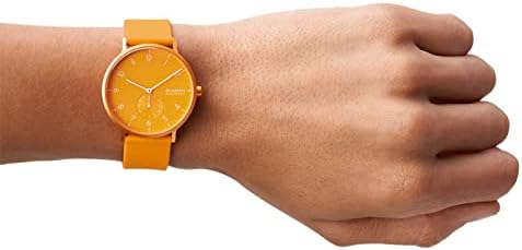 This colorful Aaren is one of our Kulor styles—named for the Danish word meaning to add color and fun. The saturated collection was inspired by the brightly colored townhouses of Copenhagen’s Nyhavn district. It features a 41mm aluminum case with a sandblasted dial, linear and numerical indexes, two-hand movement and a seconds-tracking subdial at the 6 o’clock hour. A quick-release pin construction makes it easy to interchange the silicone strap with any 20mm standard strap.