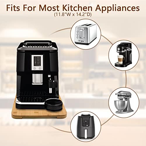 Small Appliance Slider for Kitchen Appliances – Under Cabinet Bamboo Slider for Coffee Maker, Espresso Machine, Blender, Air Fryer, Stand Mixer, Toaster, Moving Tray for Counter (11.8"W x14.2"D)