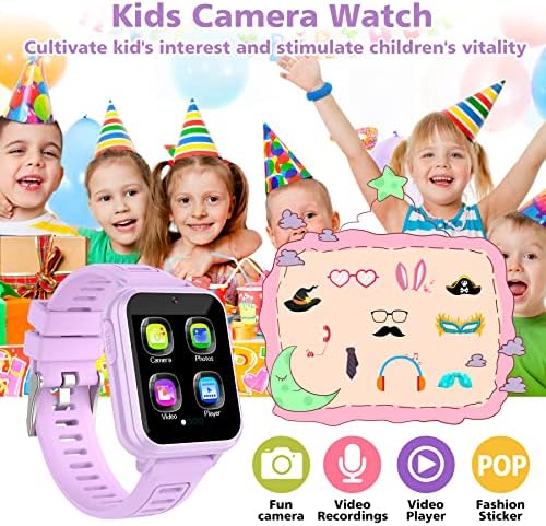 📸 Fun selfie camera/video: Digital watch is equipped with a camera and built-in magic stickers with cute effects. With pop big head sticker shooting, kids can make fun photos/videos with their friends and can capture and record every happy moment in their lives!!! The kids digital watch is capable of storing 5000+ HD photos or 6+ hours of video.