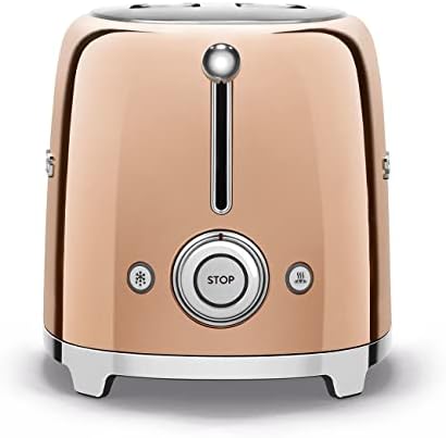 Enhance your morning with the 50s Retro Line two-slice toaster from Smeg. This toaster will look sleek on your countertop with a powder-coated steel body and polished chrome base. It features self-centering racks, an automatic slice pop-up, and a removable stainless steel crumb tray. Backed by a manufacturer’s one-year warranty, this toaster is a functional and beautiful addition to any kitchen.12″ L x 8″ W x 8″ H