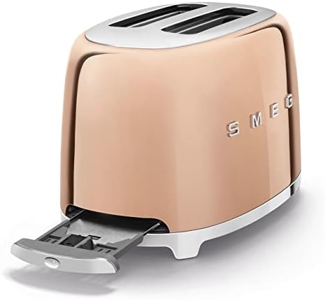 Enhance your morning with the 50s Retro Line two-slice toaster from Smeg. This toaster will look sleek on your countertop with a powder-coated steel body and polished chrome base. It features self-centering racks, an automatic slice pop-up, and a removable stainless steel crumb tray. Backed by a manufacturer’s one-year warranty, this toaster is a functional and beautiful addition to any kitchen.12″ L x 8″ W x 8″ H