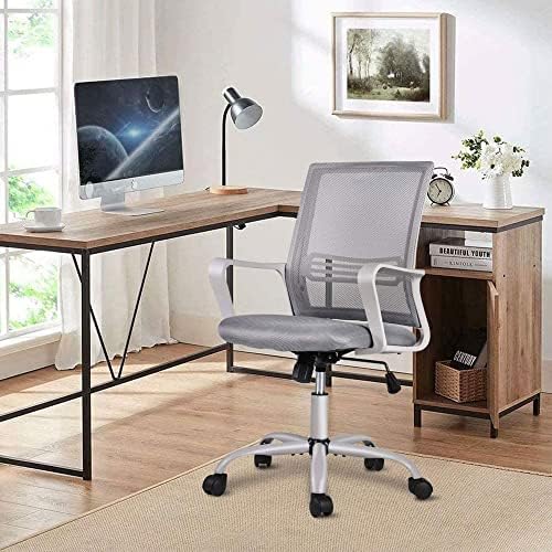 Smugdesk Ergonomic Mid Back Breathable Mesh Swivel Desk Chair with Adjustable Height and Lumbar Support Armrest for Home, Office, and Study, Gray