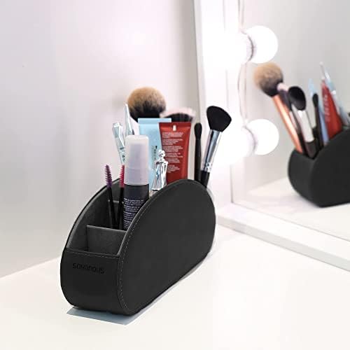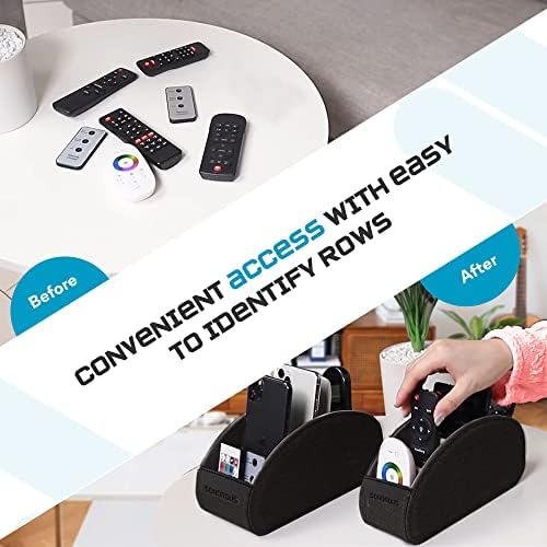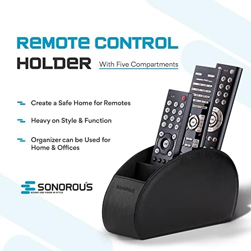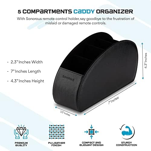 SONOROUS Premium Remote Control Holder – Luxury PU Leather TV Remote Holder with 5 Compartments – Modern Remote Caddy Organizer for Media Accessories & Office Supplies Storage – Black