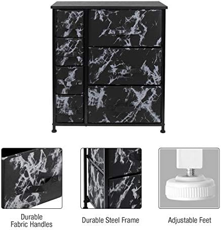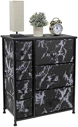 Sorbus Dresser with Drawers – Furniture Storage Tower Unit for Bedroom, Hallway, Closet, Office Organization – Steel Frame, Wood Top, Easy Pull Fabric Bins (Marble Black/Black Frame)