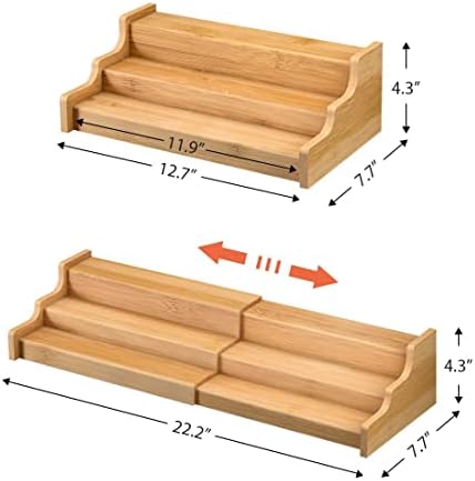 Adjustable Cabinet Organizer: Expand the wooden spice rack to the size that fits your space and needs, size 12.70”~22.20”L * 7.70”W * 4.30”H