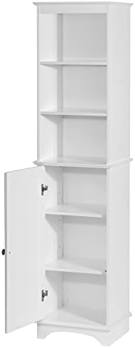STURDY AND CLASSIC: This floor storage cabinet includes a tip-over restraint device for increased safety and stability. The tall bathroom cabinet features a classic white finish, carved with clean lines and a simple silhouette, offering a modern and elegant look to your home.