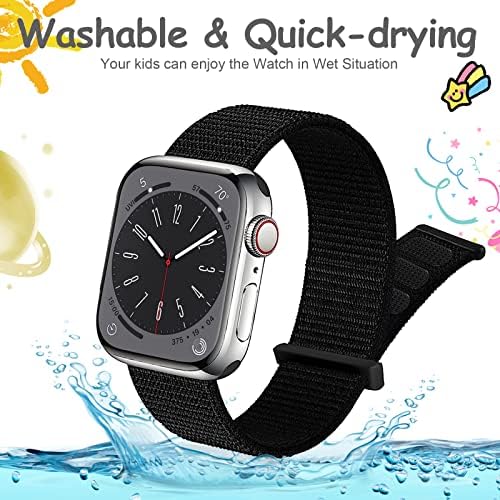 🎈【Skin-Friendly Material】The iwatch wristband made of double-layer nylon weave , which can prevent skin from irritation rash, it allows sweat to escape, soft, durable, breathable, washable, drying fast and comfortable to wear for kids.