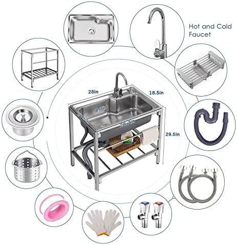 🏠【Wide Aplicables】: Free-standing Commercial Stainless steel sink bracket is durable and does not deform. Depth of 22cm Large capacity can hold a lot of dishes and clothes, making you wash more efficient. It suitable for any home, restaurant, bar, kitchens, bathrooms, laundry rooms, camping, garages, warehouses, cafeteria, other indoor oudoor commercial place.