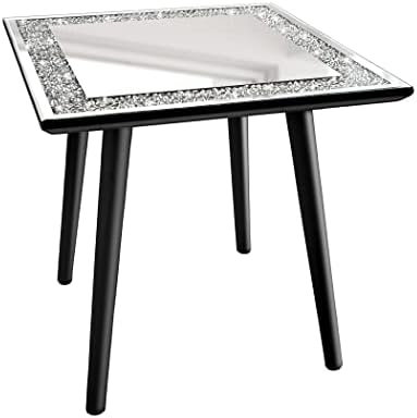 Gorgeous Modern Fashion Design. This square mirrored end table with diamond decor, is great decor for living room, Bedroom, sofa,office. Silver diamond mirror glass table top and black legs is easy to coordinate with any style of home decor. This side table with Glam mirror must will highlight your home and house.