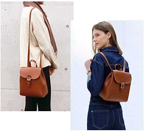 SUNLIGHT LEAVES Simple Vegan Leather Flap 3 Way Convertible Backpack For Women Classic Vintage Faux Leather Fashion Daypack (Light Brown)