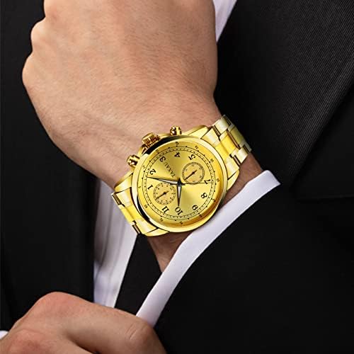 [Precise Quartz Analog Men’s Wrist Watches]This mens gold watch features a premium quartz movement, high quality coated glass and a stainless steel band with butterfly clasp, providing you with accurate timekeeping, a hard wearing and scratch resistant dial and a secure and comfortable fit.
