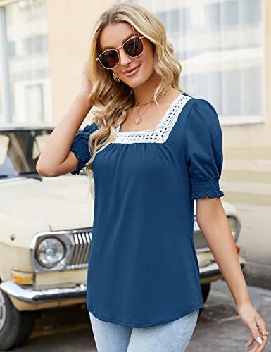 💖This Square Neck Short Sleeve Tunic is light enough and pretty enough to wear with a cute necklace, suitable for office, you can pair with jeans or legging. Basic Summer Lace Shirts can be dressed up or worn more casually. It’s a trendy and elegant women lace embroidery top best option in your wardrobe, the best choice for daily wear !