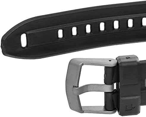 Adjustable black 20mm resin strap fits up to 8-inch wrist circumference