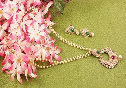Alloy metal, Indian royal Mughal Kundan look jadau style Chand Baali Moon pretty pendant set, in gold tone.