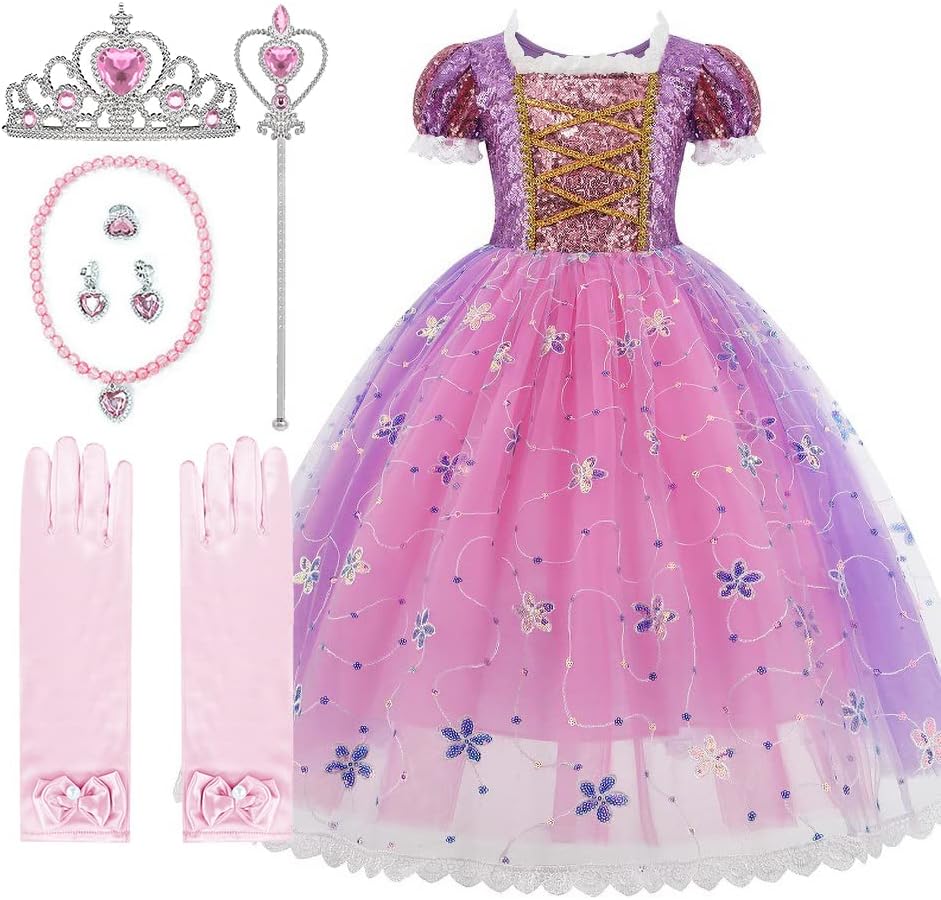 💖Premium Fabric for Comfortable Fit: This tangled dress for girls is made from satin polyester with stretch fabric back. Waist is elasticated for size flexibility. The 100% cotton lining makes sure that the garment is breathable, soft and delighting to touch for the maximum comfort for your little princess.