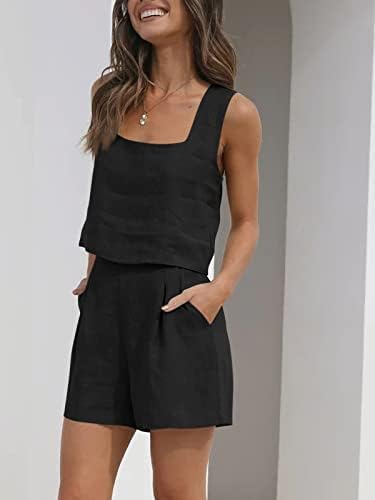 Design: Linen two piece lounge sets for women, short sets 2 piece outfits, sleeveless romper, square neck,solid color, relaxed fit,boho tank crop top,two pieces workout sets,trendy preppy clothes, matching high waisted loose athletic shorts with two sides pockets,standard size,suit for summer vacation.