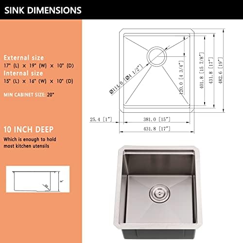 💎【STRONG STAINLESS STEEL MATERIAL】: This undermount bar sink uses innovative surface treatment application for excellent wear resistance, shatter resistance and corrosion resistance – High Performance 16 Gauge Steel: Manufactured from TRU16 – Thickest 16 gauge stainless steel for superior durability and resistance to dents and damage.