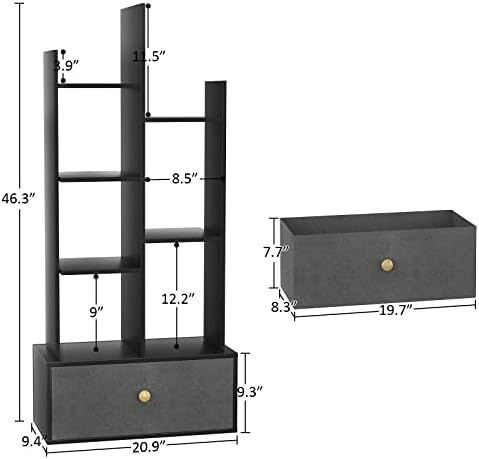 【Large Storage Space】 Features seven open shelves with one storage drawer, this bookcase can maximize the storage space and ideal for storing and displaying your books, photos, decorative accents, potted plants and more. Each of open shelves can support up to 25 lbs. Dimension: 46.3”H * 20.9”W * 9.4”D. Drawer: 19.7”L * 8.3”W * 7.7”H.