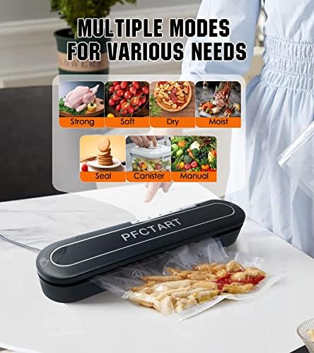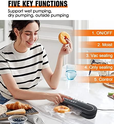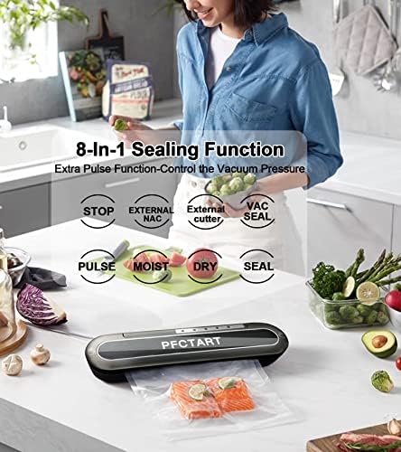 Vacuum Sealer, 8 in 1 efficacy food vacuum sealer machine, Machine with Starter Kits, food saver vacuum sealer machine, 10 bags sealed vacuum bags, pulse function, external cutter, support wet & dry mode and external vacuum system