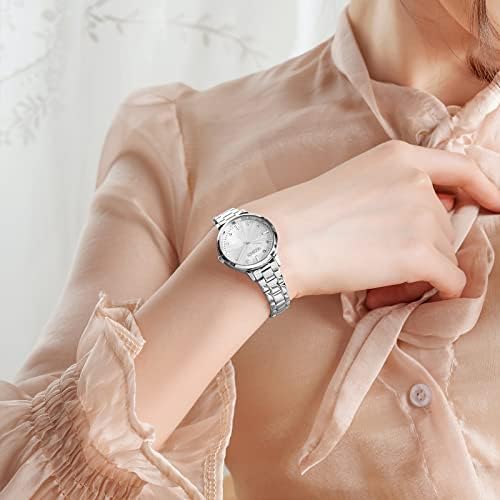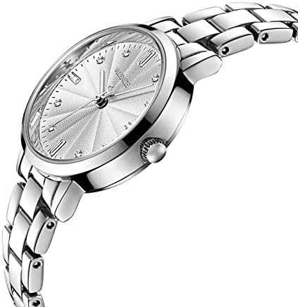 Light-weight silver stainless steel band. Alloy material is preferred, the watch case is light and thin which can be matched with various clothes.