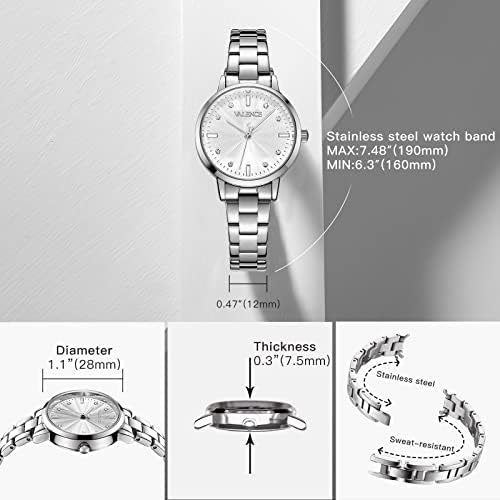 Featuring a 28mm case size,12mm watch band width,Wrist fits size from a minimum of 6.3-inch(160mm) to a maximum of 7.48-inch(189mm).
