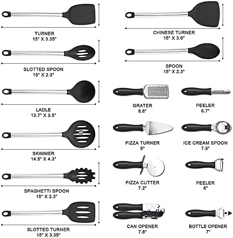 VEICA,kithcen Utensil set 42 Cooking Utensils set Nylon and Stainless Steel Utensils Set Kitchen Tool Set,Baking Set Kitchen Set Spatula Set Kitchen Gadgets Kitchen Tools Kitchen Accessories Black