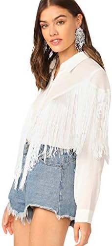 Verdusa Women’s Fringe Trim Long Sleeve Button Up Blouse Shirt Top
