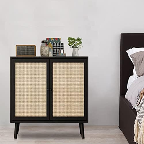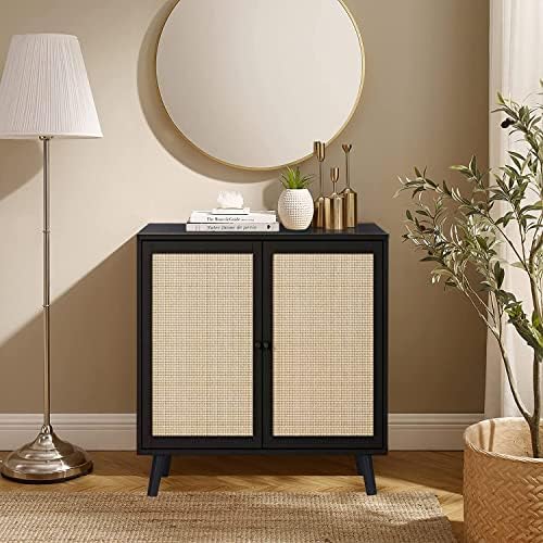 VHGEGEUW Rattan Cabinet, Accent Storage Cabinet Sideboard Buffet Kitchen Storage Cabinet TV Stand Console Table with Adjustable Shelves for Living Room, Dining Room, Bedroom