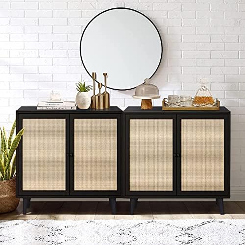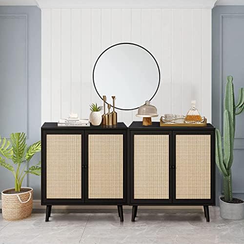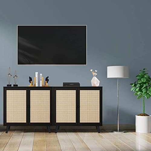 【LARGE STORAGE SPACE】The sideboard buffet table with 2 handmade natural rattan-decorated doors features a spacious top and two large storage cabinets, the internal shelf contains three adjustable positions, which greatly improves the freedom and flexibility of storage. It is great to place display items or decorations or necessities, making your room tidy and orderly.