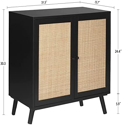 【EASY ASSEMBLY】The sideboard buffet storage cabinet with Handmade natural rattan doors is easy to assemble. The overall Dimension is 30”*15.7”*31.5”. Recommended weight capacity is 160 lbs for the top and 25 lbs for each shelf.