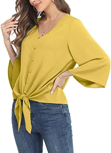 Item type: Tie front shirts for women,cute summer tops for women,business casual tops for women,chiffon blouses for women work business,v neck flowy tops,3/4 sleeve top for women,casual loose shirt tops.
