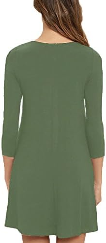 VIISHOW Womens Round Neck 3/4 Sleeves A-Line Casual Tshirt Dress With Pocket.