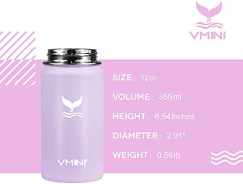 【Product Feature】 12oz ( 355ml ), frosted matte powder coat with various colors. Comes with 1 straw lid, 2 straws and 1 straw brush. Vmini Water Bottle has more sizes, colors, and various accessories.