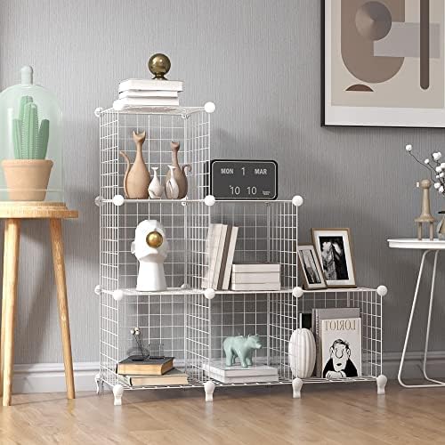 Wolizom Wire Cube Storage, Metal Grids Shelves Bookshelf, Stackable Modular Shelving Organizer, DIY Closet Bookcase Bookshelf, 6-Cube Grid Storage Shelf for Bedroom, Living Room, Office