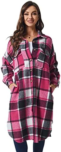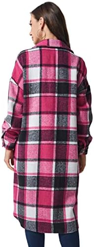 Womens Long Plaid Shacket Jacket Long Plaid Coat
