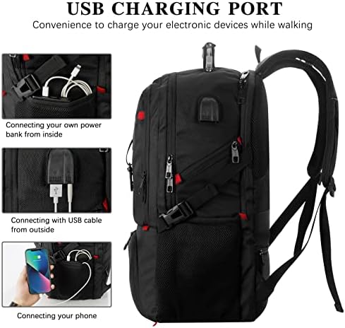 【TRAVEL FRIENDLY DESIGN】The laptop backpack combines all convenient features for outdoor activity and travel. External USB CHARGING PORT convenience to charge your electronic devices while walking. LUGGAGE STRAPS allow you to attach to a luggage case and slide along with it. ANTI-THEFT POCKET on the back for your valuables. Perfect partner for business trip and traveling